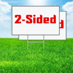 Our corrugated PVC yard signs are 24" wide by 18" tall, UV printed with your design printed on one or both sides. Metal ground stakes are included at no additional cost.